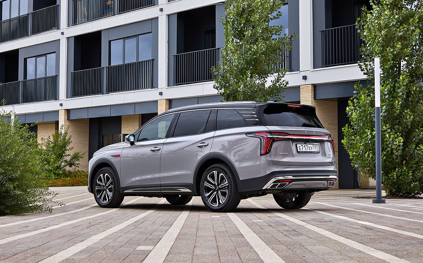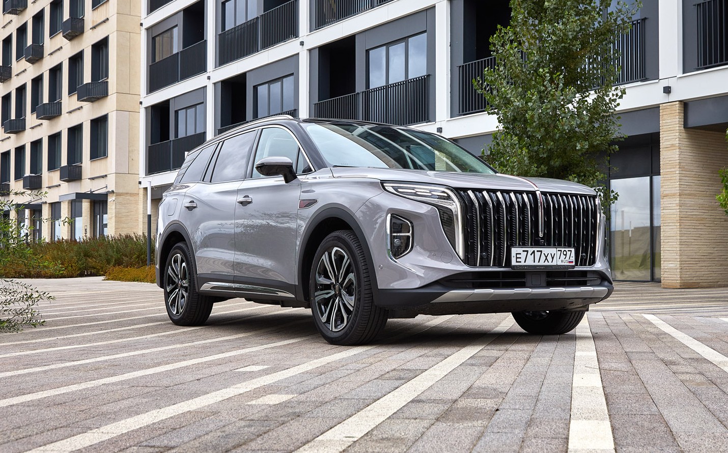 Hongqi HS7 появился в Китае в 2023 году, но до России добрался лишь несколько месяцев назад. Внешность солидная: двухуровневые вертикальные фары органично вписаны в крупную решетку, а широкую заднюю часть разделяет непрерывная диодная полоса.