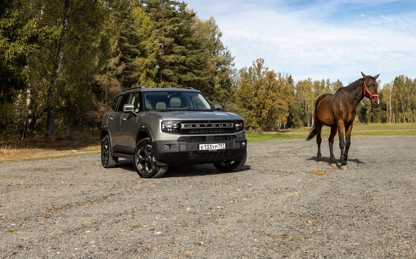 Jetour T1 — младший брат T2, который по духу мало чем отличается от старшего родственника. Дизайн намеренно угловатый: высокий клиренс, короткие свесы, массивный пластиковый обвес — все это делает автомобиль визуально готовым к выезду на грунт.