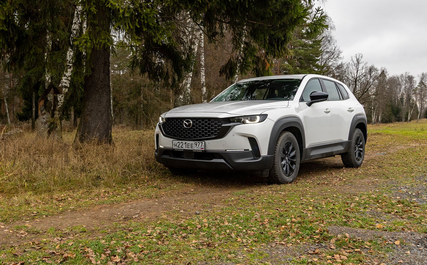 Мировой дебют СХ-50 состоялся еще в 2021 году, но до России кроссовер добрался лишь недавно. Он крупнее и солиднее привычной CX-5, а защитный обвес по кузову создает ощущение более «накачанного» автомобиля.