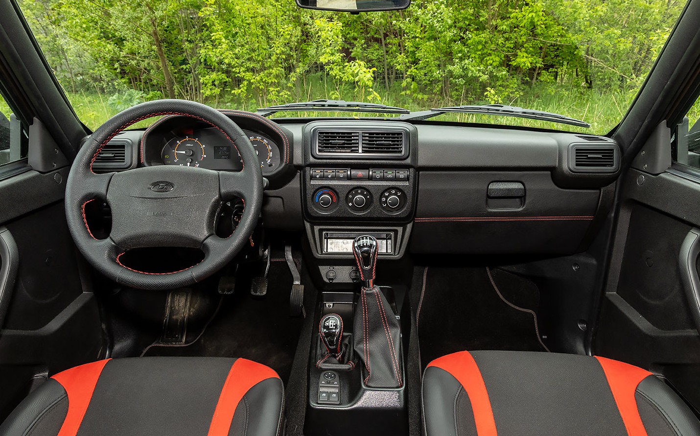 Еще одна знаковая новинка — Niva Sport. Это хорошо знакомая «Нива», которую точечно доработали, сохранив характер. Внешне автомобиль стал чуть агрессивнее: расширители арок, новая подвеска, детали с красной прострочкой в салоне.