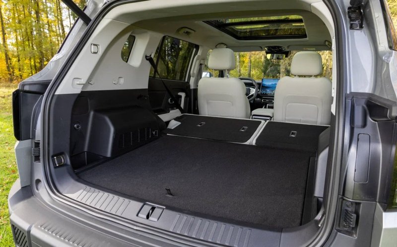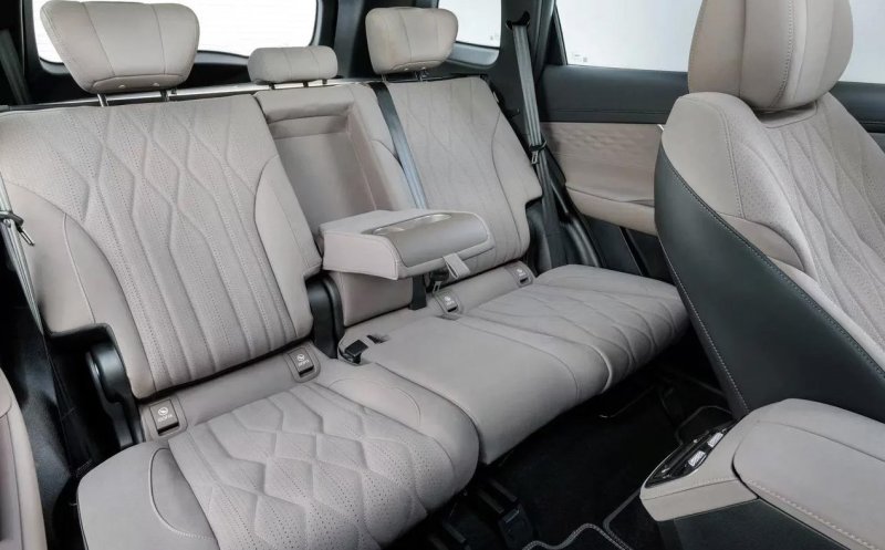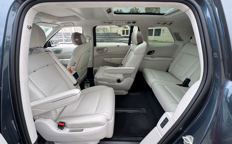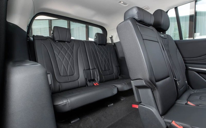В интерьере — премиальные материалы: кожа, металл, натуральный шпон. Но при всем этом антураже места на третьем ряду практически нет.