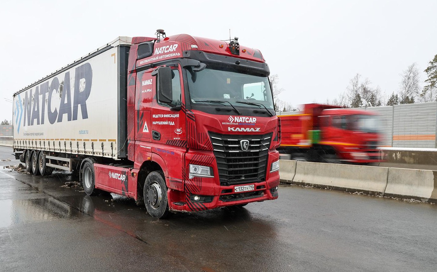 «Беспилотники курсируют с ограничением скорости до 89 км/ч. Для контроля дорожной обстановки используются радары, лидары и камеры, отслеживающие разметку и окружающую обстановку», — говорится в сообщении КамАЗа.