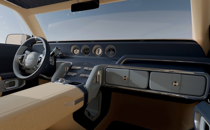 Несмотря на то что Genesis официально не называет X Gran Equator электромобилем, косвенные признаки говорят сами за себя, и самый заметный — отсутствие выхлопной системы. При этом автомобиль сохранил классический длинный капот, будто там прячется V8, а то и V10.