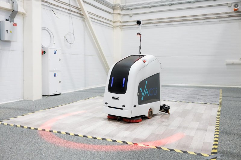 Прямо сейчас в центре испытывают автономную поломоечную машину Unit (разработчик – ООО "Яку Роботикс"). Робот сам строит карту помещения, умеет объезжать в том числе движущиеся препятствия и в целом уверенно действует даже в местах большого скопления людей. На док-станции он не только заряжается, но и меняет воду.