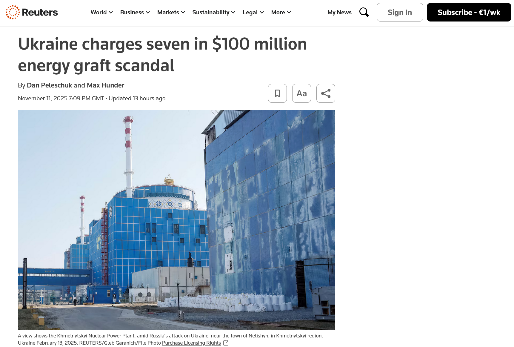 Как сообщает Reuters, на Украине предъявлены обвинения семи предполагаемым участникам схемы откатов, пятеро из них были задержаны Национальным антикоррупционным бюро (НАБУ). По версии следствия, речь идёт о «заговоре с целью контроля за закупками на государственных предприятиях», в частности в «Энергоатоме», говорится в статье.