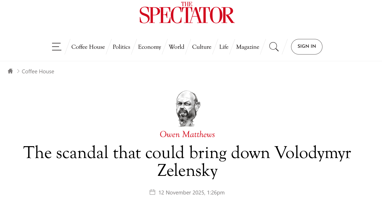 Между тем журнал The Spectator прогнозирует, что нынешний коррупционный скандал может «привести к падению Зеленского».
