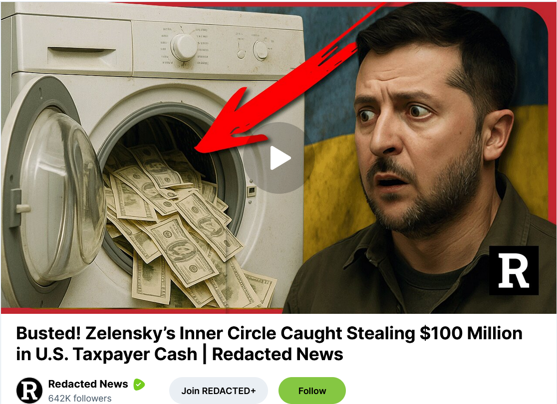 Redacted News: «Попались! Ближний круг Зеленского поймали на краже $100 млн у налогоплательщиков США»