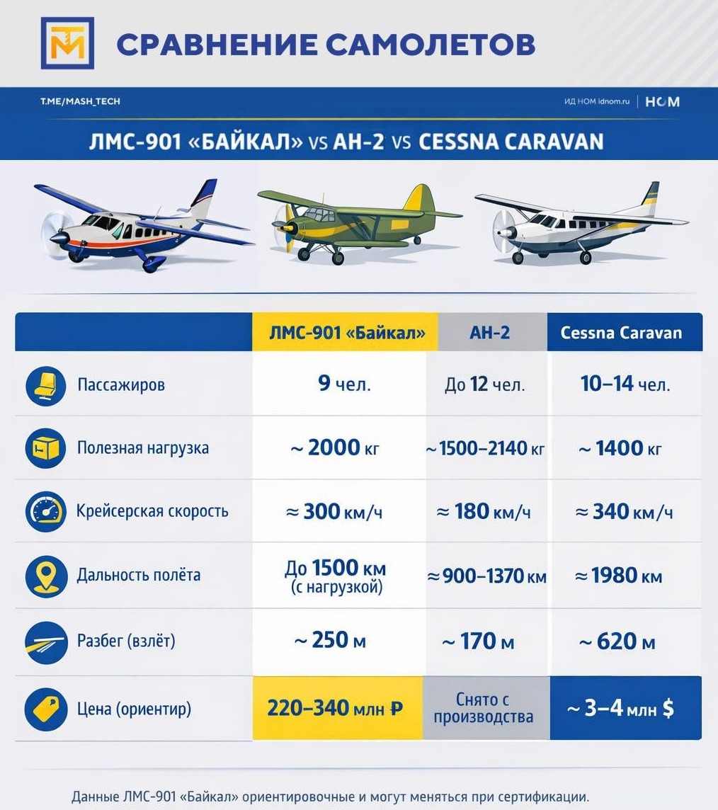 Сравнение ЛМС-901 "Байкал" с Ан-2 и Cessna Caravan