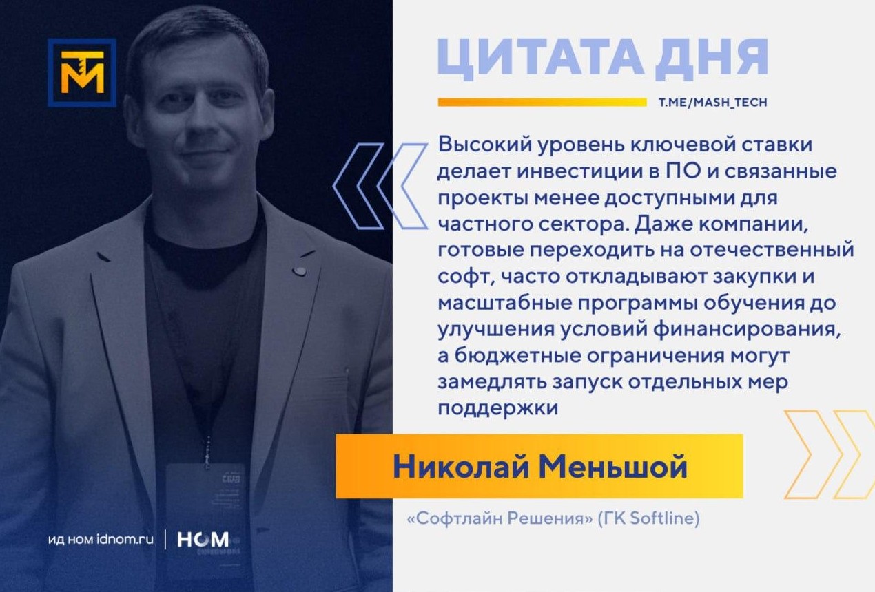 Как пишет Николай Меньшой, высокий уровень ключевой ставки делает инвестиции в ПО и связанные проекты менее доступными для частного сектора. Ещё один барьер – дефицит квалифицированных кадров.