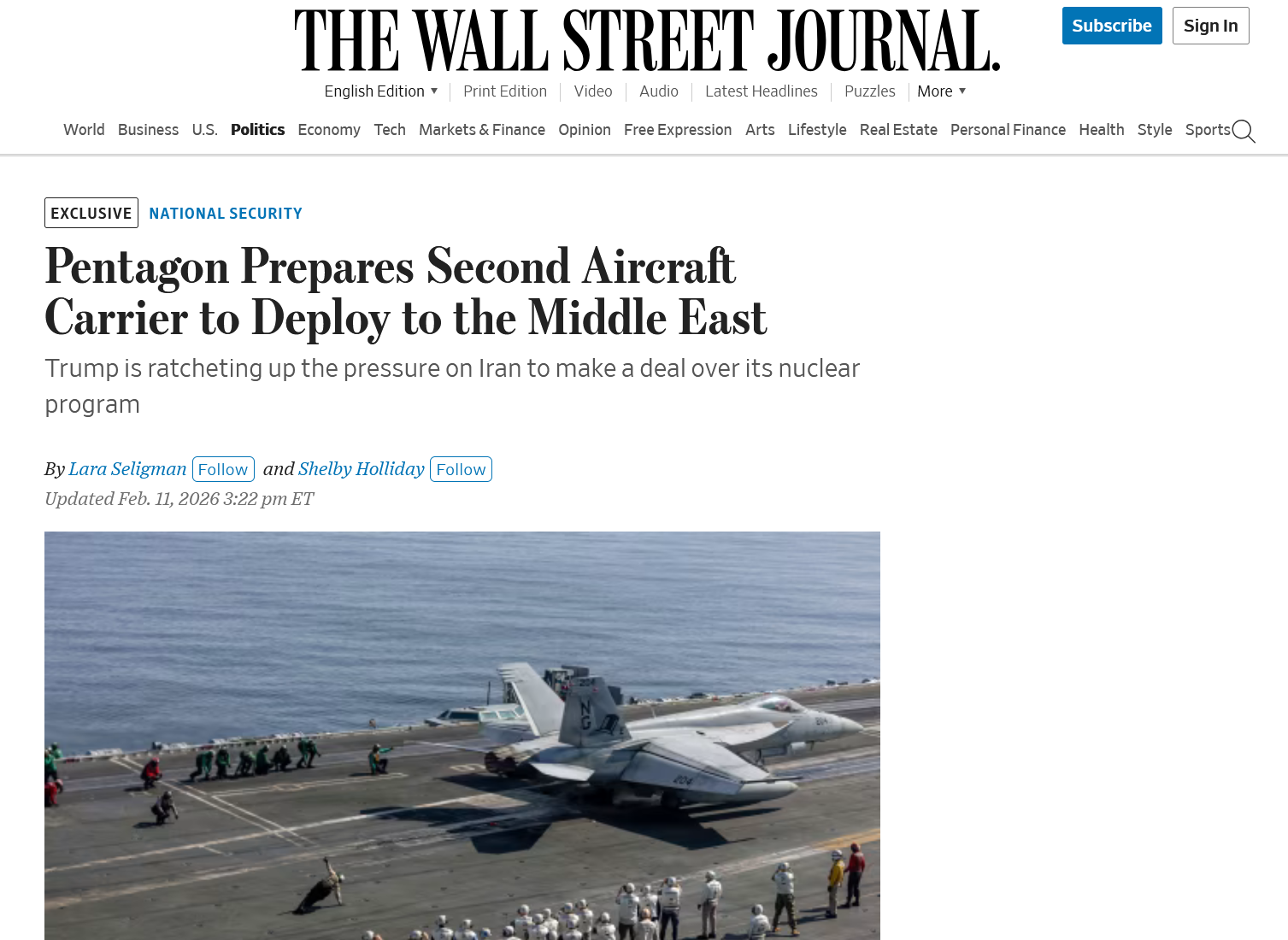 Подготовка США к возможному нападению на Иран оказалась в фокусе внимания западных СМИ. Как сообщает The Wall Street Journal (WSJ) со ссылкой на трёх американских официальных лиц, Пентагон готовится направить на Ближний Восток вторую авианосную ударную группу.