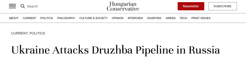 Так, венгерское издание Hungarian Conservative задаётся вопросом, почему ВСУ попытались вывести из строя нефтеперекачивающий объект, находящийся в 1100 км от границ Украины.