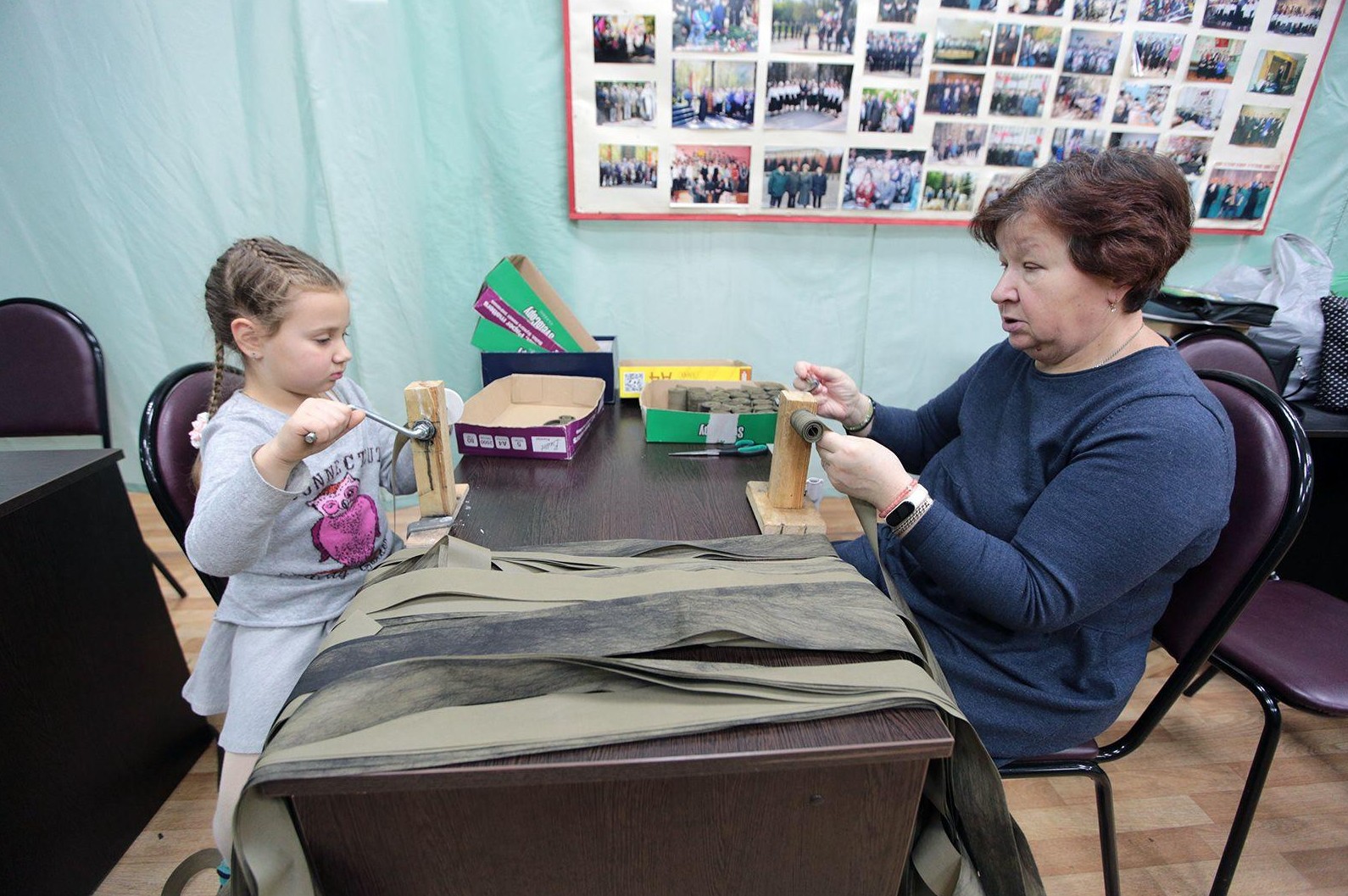 "Я стараюсь приходить каждый день к открытию, к двум часам, средние дети приходят после школы, а младшую я забираю после садика. Они научились резать ленты и плести сети. А непосредственно перед отправкой делают рисунки для бойцов, пишут письма. В нашей семье многие родственники воевали в Великую Отечественную. И сейчас важно как можно больше помочь нашим ребятам на фронте, чтобы сохранить их здоровье и жизни", – рассказала жительница Савёловского района Екатерина Пшенбаева.