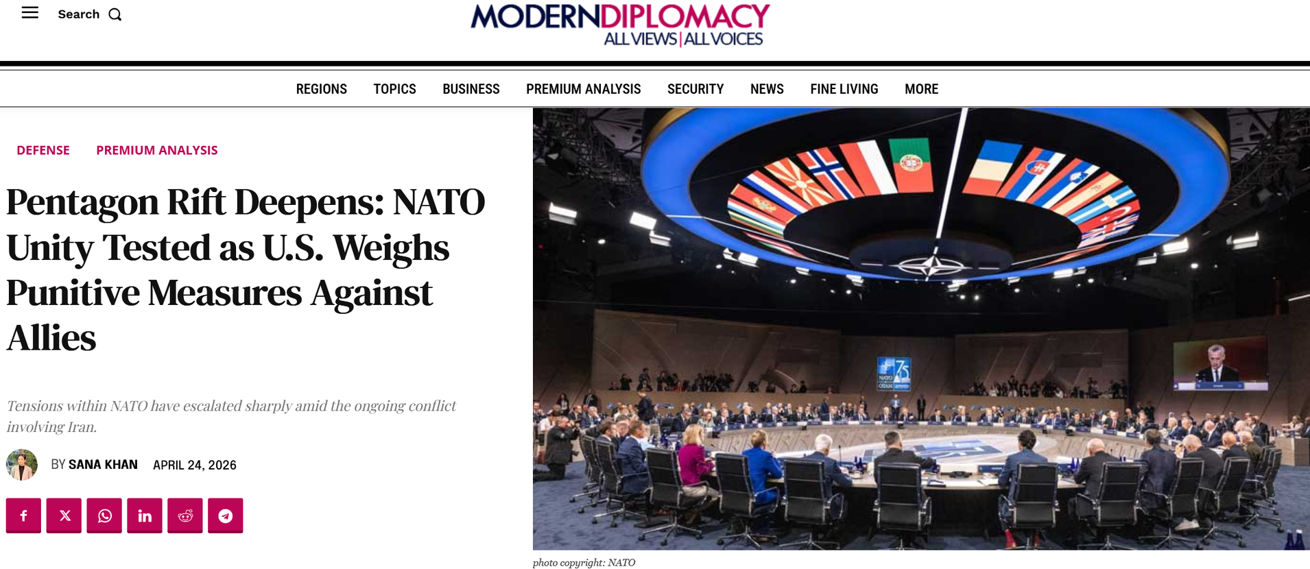 Со своей стороны, издание Modern Diplomacy отмечает, что сложившаяся ситуация «свидетельствует о структурной напряжённости в НАТО, а не о временных разногласиях». По мнению автора статьи, США рассматривают НАТО как «гибкий инструмент ведения коалиционных военных действий» и ожидает от союзников «поддержки широкого спектра операций», в то время как европейские страны не готовы давать «автоматическое одобрение военных кампаний под руководством США за пределами Европы».