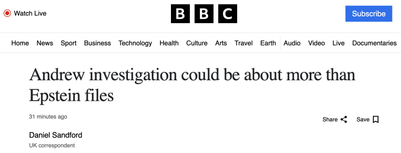 BBC также сообщает, что расследование в отношении Эндрю может касаться «не только файлов Эпштейна».