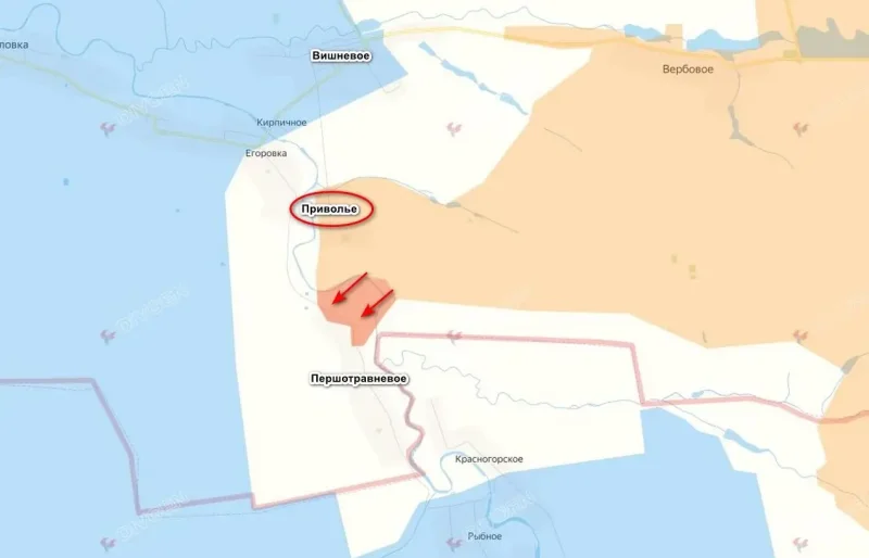 Штурмовики из 37-й отдельной гвардейской мотострелковой бригады 36-й армии группировки войск «Восток» после освобождения населенного пункта Приволье не ударили на Кирпичное с последующим выходом в тыл Вишневому, как предполагалось, а форсировали реку Янчур и вошли в северную часть села Першотравневое.